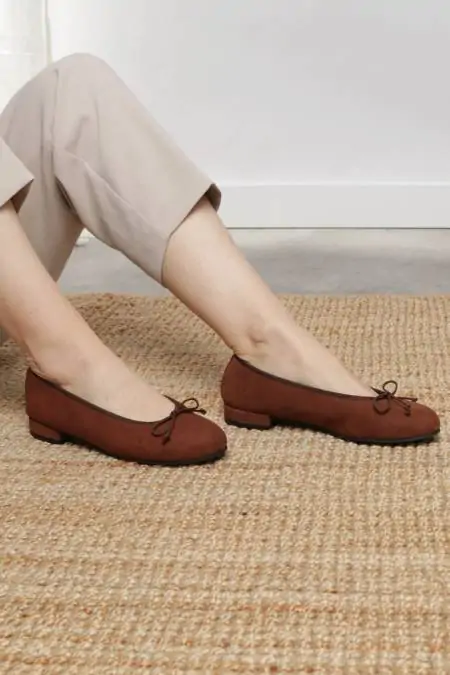 Women's brown ballet flats for trendy looks! Discover that comfortable flat shoes can also be elegant. If you are looking for a shoe that combines comfort and elegance, you cannot miss these brown suede ballet flats. They are made entirely of soft natural leather, both on the outside and inside. They have a gel-padded leather insole for extra comfort. The cotton bow detail runs along the entire neckline and you can adjust them to your liking. They have a small leather-lined heel that is 2 cm. and a super flexible non-slip rubber sole. Don't hesitate, these women's ballet flats will be your best purchase since they are handcrafted in Spain with high-quality natural leather.