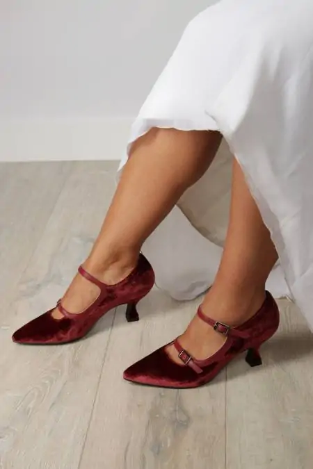 If you're looking for dress shoes that combine elegance, comfort, and a unique style, this burgundy velvet model is the answer. Its design is perfect for both a bride who wants to break away from tradition and a guest who wants to stand out with a sophisticated and distinctive touch. Every detail has been designed to make you feel confident, feminine, and special at that event you'll always remember.