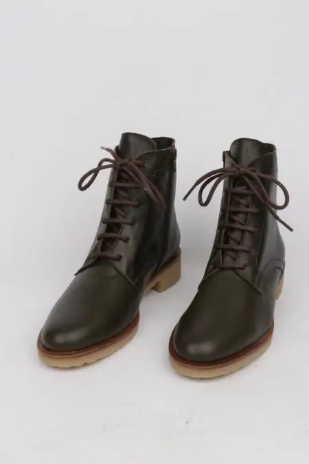 Looking for comfortable flat ankle boots to elevate your looks this season? This khaki green ankle boot offers a perfect balance between style and comfort. Its natural tone brings freshness to your wardrobe without losing sophistication.