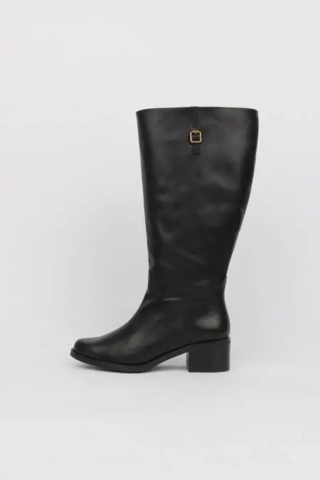 Low heel high boots black leather wide leg XXXL+
