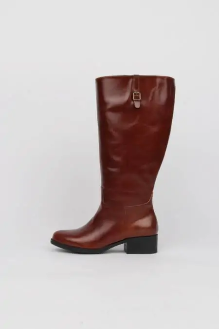 Low heel high boots brown leather wide leg XXXL+