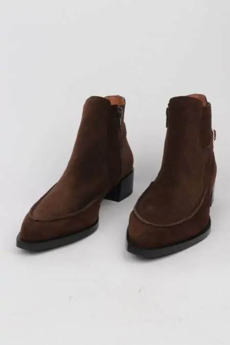 This brown low-heeled ankle boot is designed for women who seek much more than just footwear: it is a symbol of authenticity, character, and an attention to detail. Its design conveys an elegant serenity that adapts to every step, inviting you to walk with confidence and projecting an image that never goes unnoticed.