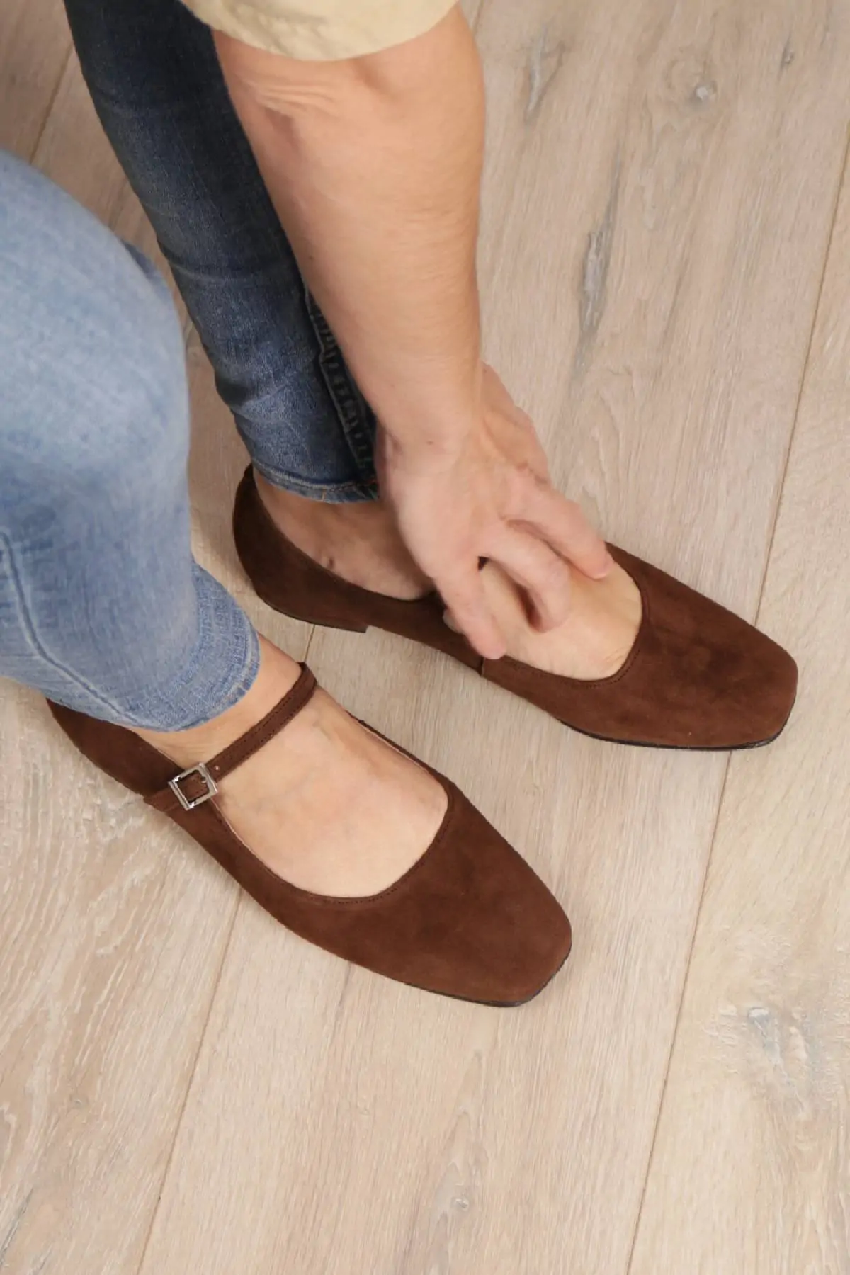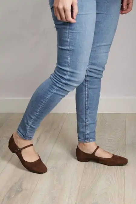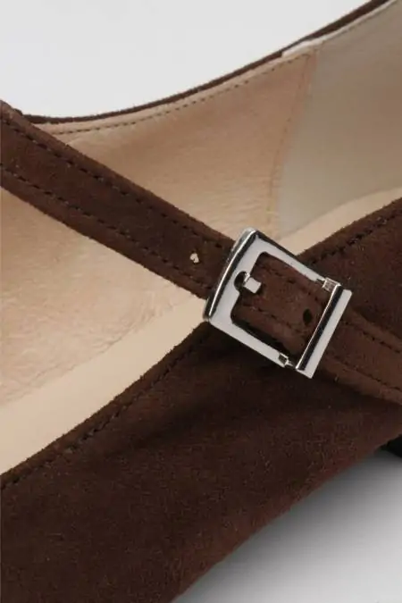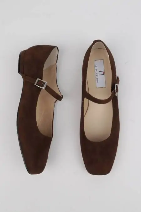 Are you looking for a shoe that goes with everything, is comfortable, and also makes you look elegant? These brown suede ballet flats with a strap are the answer. The soft touch with that characteristic velvety finish adds warmth to any look. Their brown hue is timeless and easy to match, but with the advantage of being more cozy and welcoming than black.