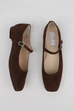 Brown suede flat Mary Janes