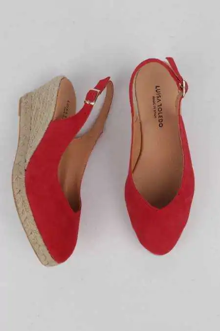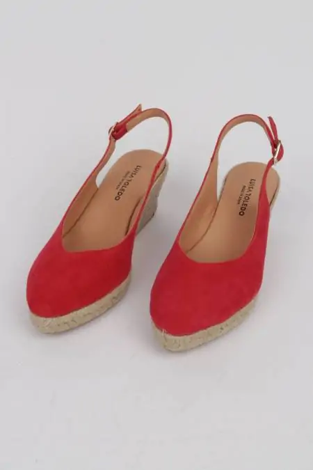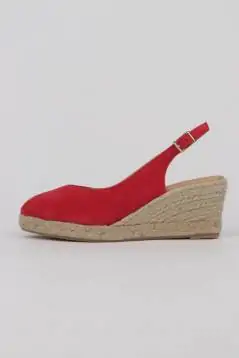 ¡Alpargatas cómodas y con mucho estilo para lucir con todos tus estilismos este verano! Descubre en estas alpargatas rojas destalonadas tus mejores aliadas para llevar de la mañana a la noche con mucho estilo y comodidad, diseñadas pensando en ti, combinando a la perfección la moda contemporánea y la calidad de elaboración artesana. El detalle de hebilla en la tira del talón asegura un ajuste personalizado y la punta estilizada logra el equilibrio perfecto entre glamour, tendencias y confort. Con una cuña de 7 cm. y plataforma de 2 cm. están elaboradas en España íntegramente con piel natural de la mejor calidad, para que sientas una caricia cada vez que las lleves.