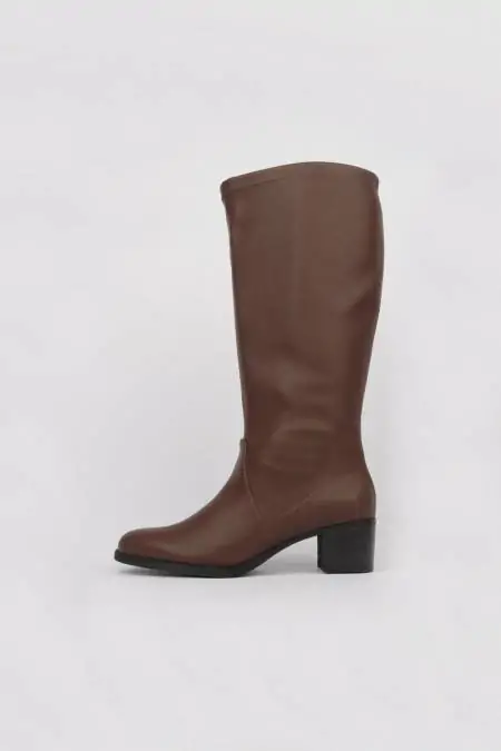 ¿Necesitas unas botas altas de tacón cómodo que se adapten perfectamente a tus piernas? Con estas botas marrones de tacón elaboradas en piel vegana encontrarás tu modelo ideal, se adaptarán perfectamente a tus piernas, gracias al material vegano elástico, además cuentan con un extra de anchura en la zona del tobillo y cremallera para facilitar el calce. El tacón ancho de 5 cm. y la suela de goma flexible las convierte en tu bota perfecta para llevar de la mañana a la noche con total confort. Con una tonalidad que aporta mucho estilo a cualquier outfit, serán tu apuesta ganadora este invierno, además el confort está asegurado gracias a que están elaboradas en España con materiales de máxima calidad.
