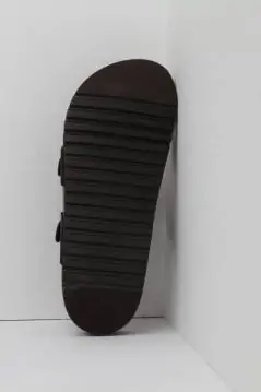 El exterior de esta sandalia tipo chancla está elaborada de piel natural de gran calidad, con acabado engrasado de tacto muy suave y agradable.