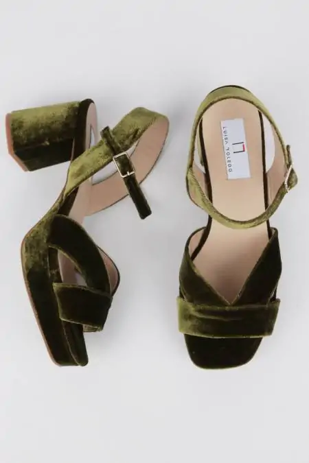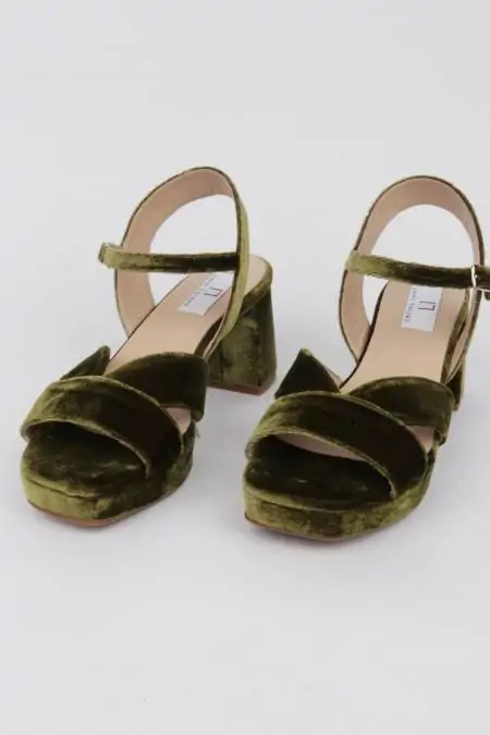 Hechas a mano en España, estas sandalias reflejan calidad, tradición y cuidado en cada detalle. Su tacón ancho con plataforma ofrece estabilidad sin renunciar al estilo. El terciopelo verde aporta un aire de sofisticación natural y atemporal. Su suavidad y brillo discreto elevan cada look con frescura y elegancia.