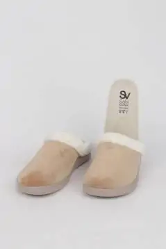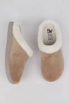 Zapatillas casa mujer camel detalle pelo
