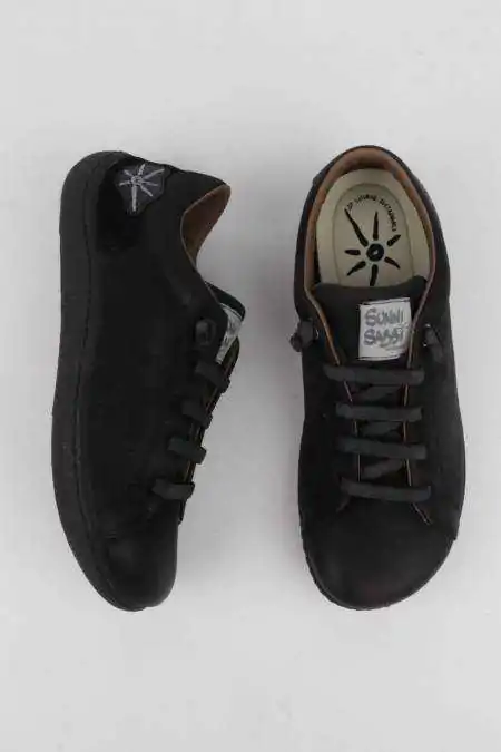 ¡Deportivas negras barefoot súper cómodas! Da un paso adelante y hazte con las deportivas Eco-Friendly que más te vas a poner, ¡son tan cómodas que no te las quitarás! Tienen los cordones elásticos para un ajuste personalizado a tus pies, que además facilitan el ponérselas, las suelas de goma con la forma natural del pie garantiza una comodidad inigualable. Tienen las plantillas Sunni Sabbi acolchadas para una pisada aún más confortable, las plantillas son elaboradas a partir de restos de otras plantillas, de forma que se crea una economía circular. Si quieres cuidar de tus pies la mismo tiempo que cuidas del planeta, los zapatos Sunni Sabbi serán tu mejor opción, ya que están elaborados en España con pieles naturales de forma respetuosa con el medio ambiente y las personas.