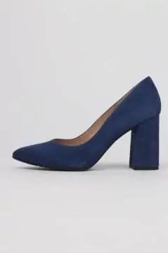 Zapatos de salón tacón ancho ante azul