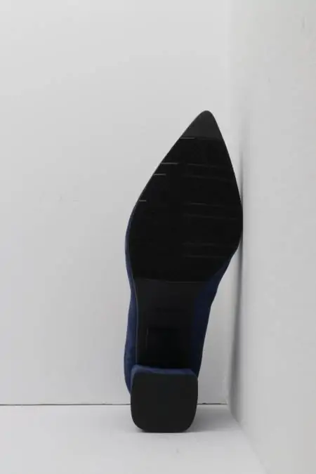 Para estos zapatos de tacón ancho hemos elegido una tonalidad azul jeans muy especial que aportará un toque de color a tus estilismos.