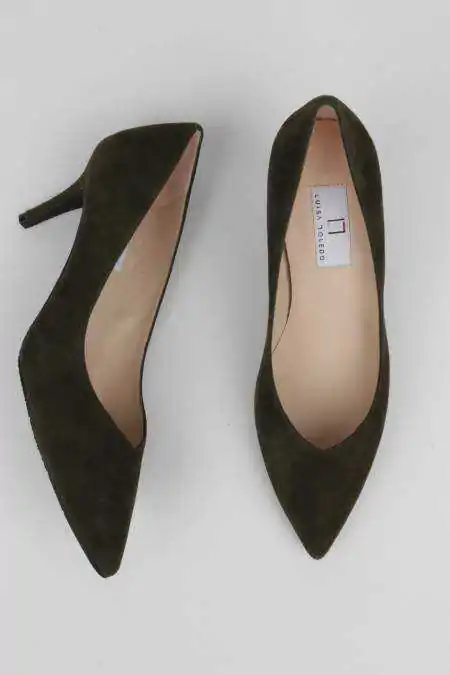 Zapato stiletto verde khaki escote pico