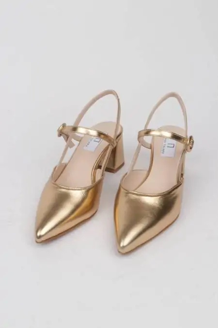 Color dorado. Perfecto para crear un efecto óptico de alargamiento de tus piernas que te resultará increíble. Además brillarás en cualquier evento gracias a la piel dorada de la mejor calidad. No te arrepentirás de hacerte con los zapatos dorados más chic de toda la temporada.