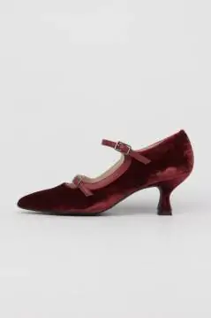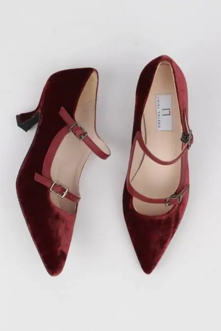 Zapatos vestir terciopelo burdeos detalle pulsera