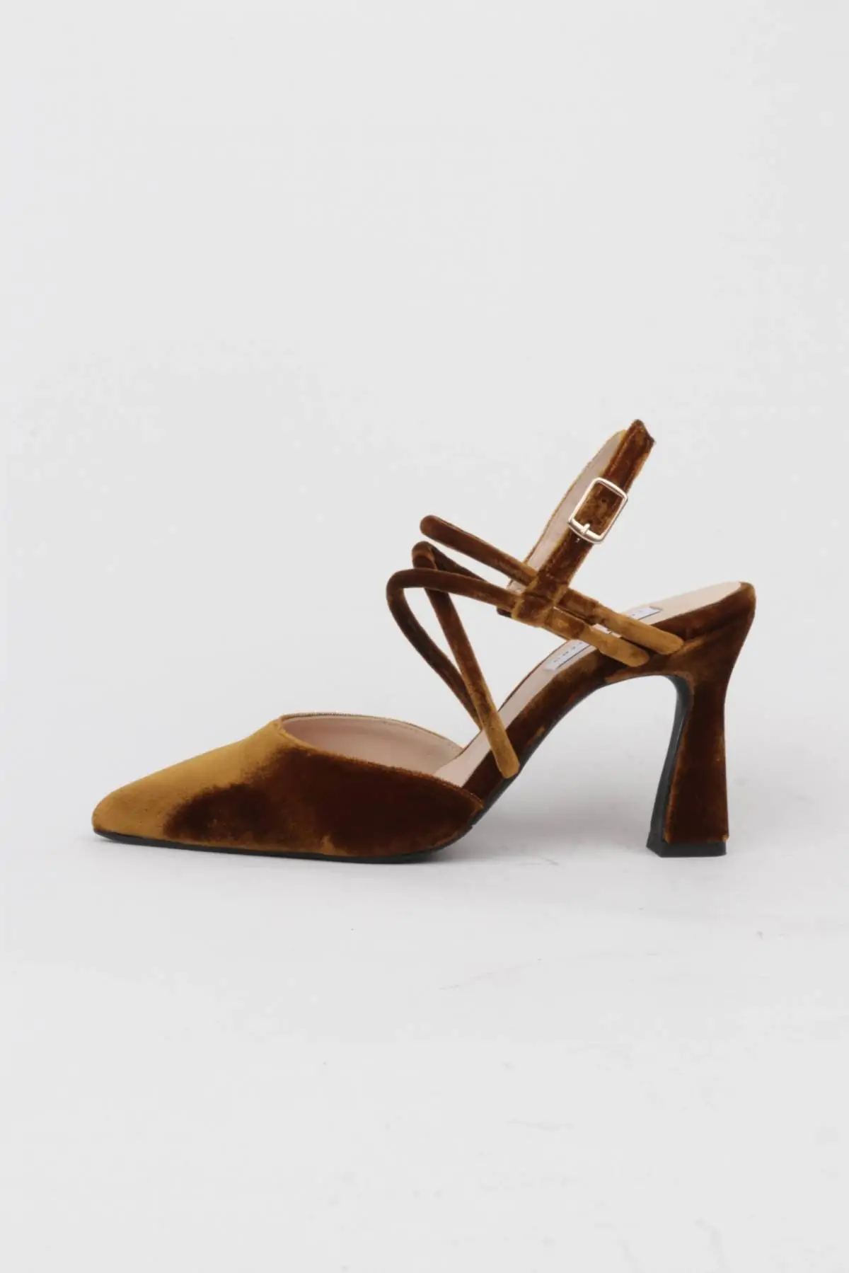 La punta fina estiliza la figura y aporta un aire sofisticado, mientras que las tiras cruzadas en el empeine abrazan el pie con elegancia, creando un juego visual atractivo y delicado. El cierre con hebilla ajustable asegura un ajuste perfecto, mientras el tacón trapecio equilibra y aporta comodidad, invitando a caminar, bailar y disfrutar sin preocupaciones.