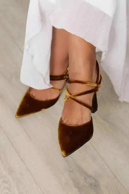 - Zapato de vestir en terciopelo, suntuoso y elegante.