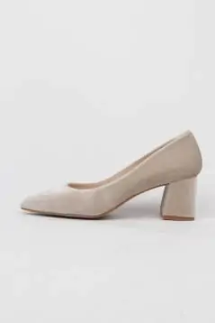Tiene tacón ancho, forrado en terciopelo al tono, con una altura de 5,5 cm.