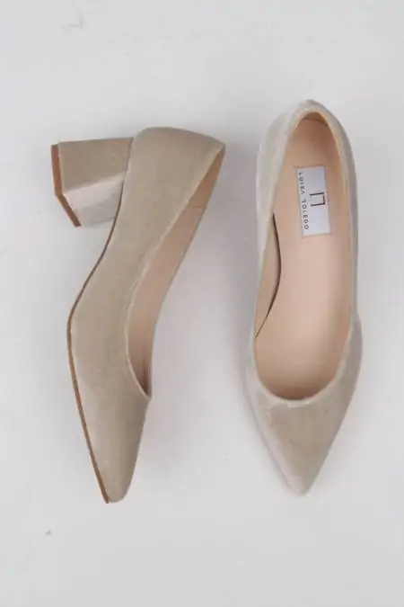 El día de tu boda está lleno de momentos irrepetibles, y cada detalle cuenta. Este zapato en terciopelo ha sido diseñado para acompañarte con elegancia y seguridad en cada instante: desde la primera mirada hasta el último baile. Su estilo sutil y sofisticado convierte cada paso en un reflejo de tu esencia, envolviendo la jornada en un aura de ternura y belleza.